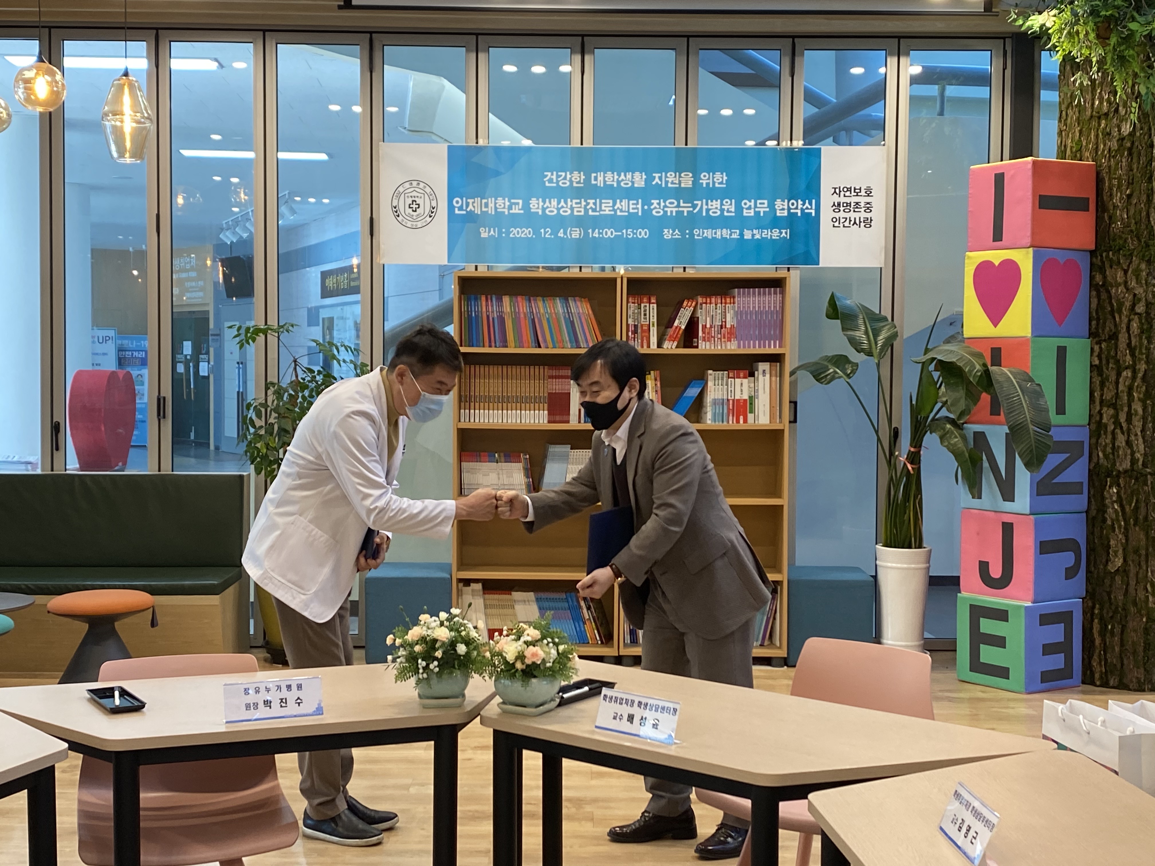2020³â 12¿ù 04ÀÏ ÀåÀ¯´©°¡º´¿ø°ú ÀÎÁ¦´ëÇб³ Ãë¾÷Áø·Î°ú°¡ ¾÷¹«Çù¾à½ÄÀ» ü°áÇÏ¿´½À´Ï´Ù.